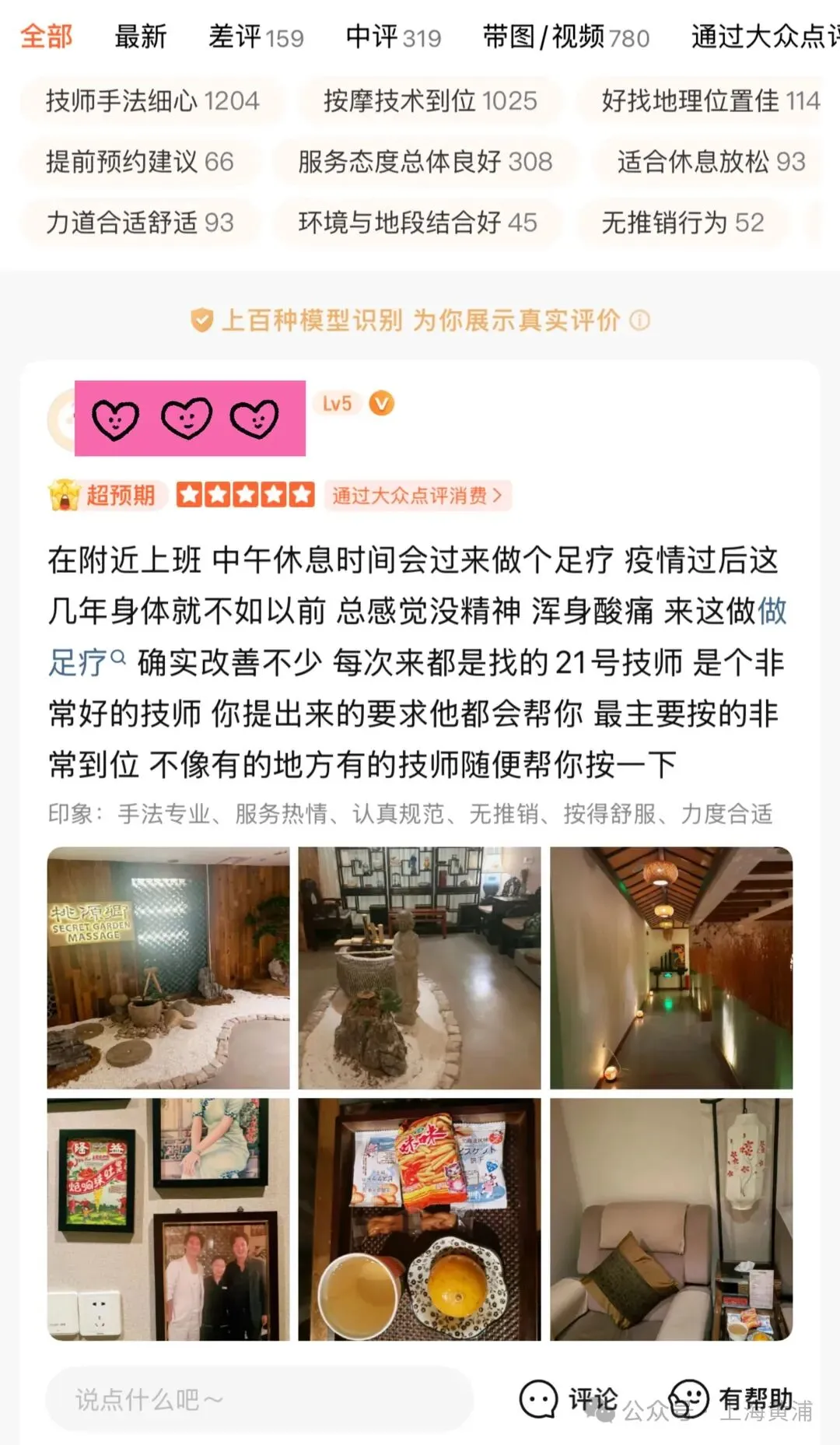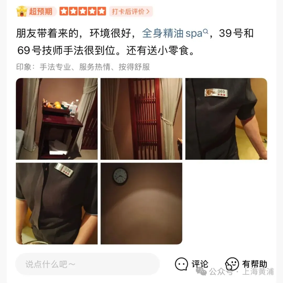 在大众点评上,桃源乡南京东路店累计评价超过5500条,评分高达4.5分。有超过1200条评价提及“技师手法细心”,超过1000条评价提及“按摩技术到位”。一位顾客写道:“朋友带着来的,环境很好,全身精油SPA,39号和69号技师手法很到位,还有送小零食。”还有一位顾客写道:“每次来都是找的21号技师,是个非常好的技师,你提出来的要求他都会帮你,最主要按得非常到位,不像有的地方有的技师随便帮你按一下。”这些数据和评价同样也在韩国游客的上海攻略里口口相传。