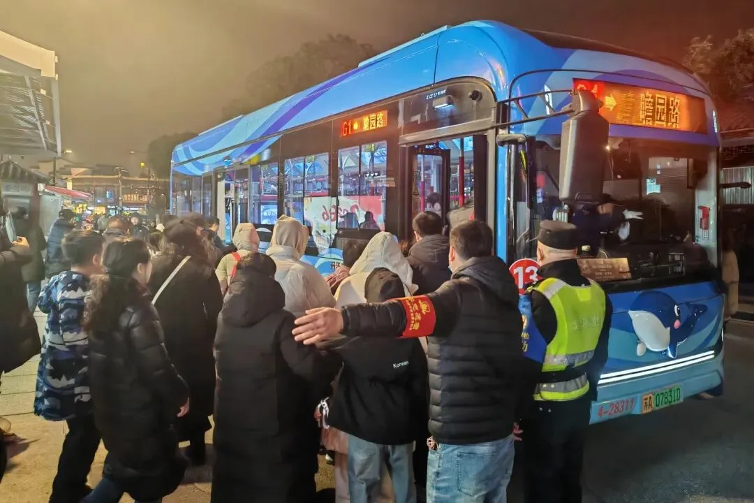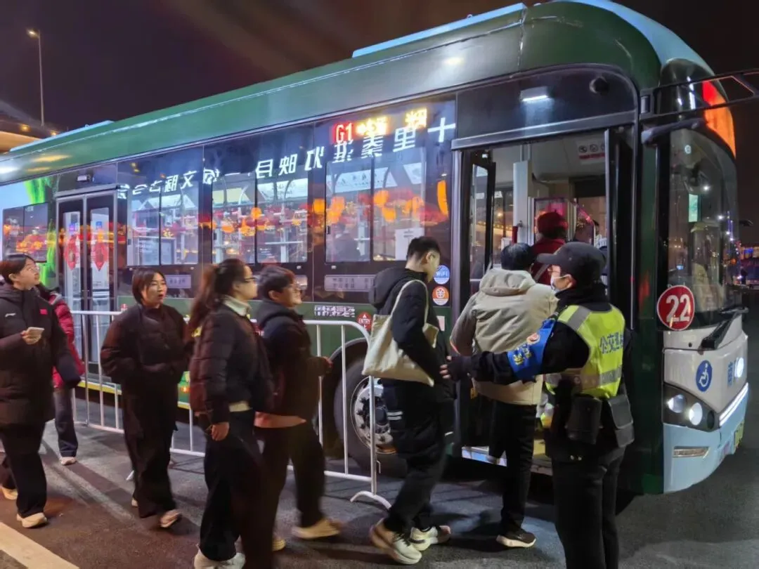 乘务巡检支队在做好70条重点线路、24个重要站点日常巡检值守的基础上,每日安排30名巡检员驻守夫子庙接驳线沿线站点,现场维持秩序、引导乘客有序上下车、解答出行咨询、帮扶老弱乘客,全力保障春节及秦淮灯会期间夫子庙接驳线路安全高效运转。