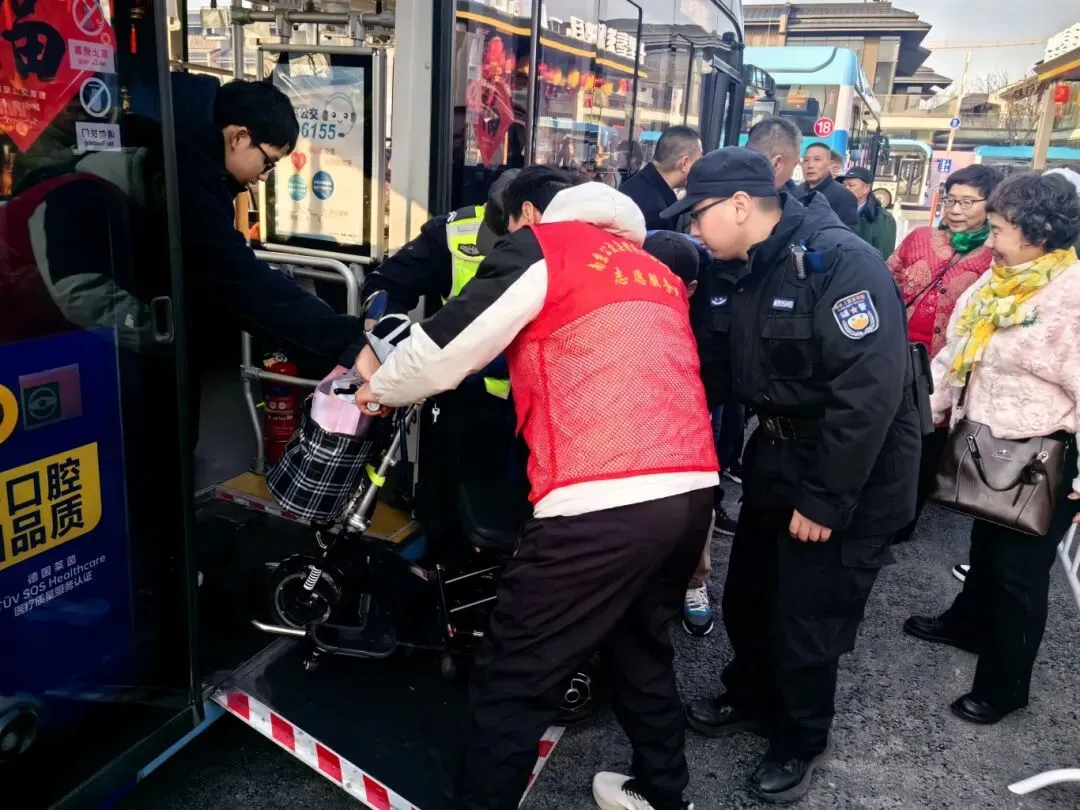 志愿服务中,退伍军人突击队充分发扬军人担当,主动为乘客提供全方位便民帮助:搀扶老弱病残孕等特殊乘客安全上下车,帮助返乡旅客搬运行李、耐心解答线路换乘、首末班时间等出行咨询,用细致周到的服务温暖每一段归途。