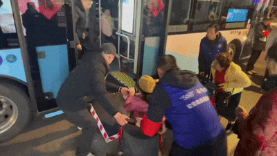 公交志愿者搀扶着其中两位