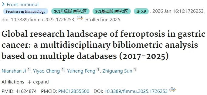 图1. 2017年至2025年间,年度发表趋势显示铁磷凋亡与胃癌的关系