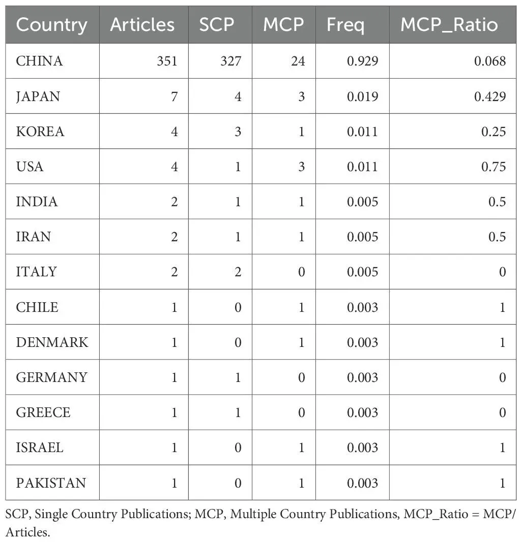- 中国主导研究(351篇),但国际合作率仅6.8%;美国、日本国际合作率高(75%、42.9%)。