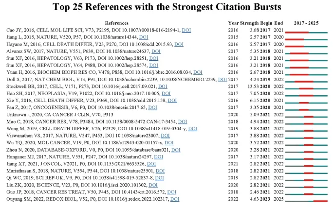 图5. 铁磷中毒与胃癌研究关系的25个引用最强的参考文献