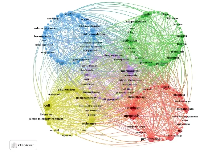 图6. 铁磷凋亡与胃癌关系的相关出版物关键词共现图