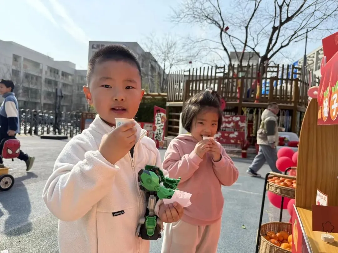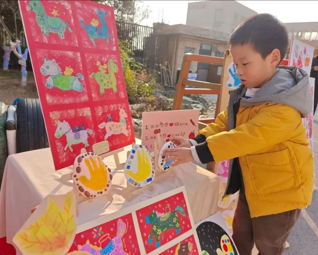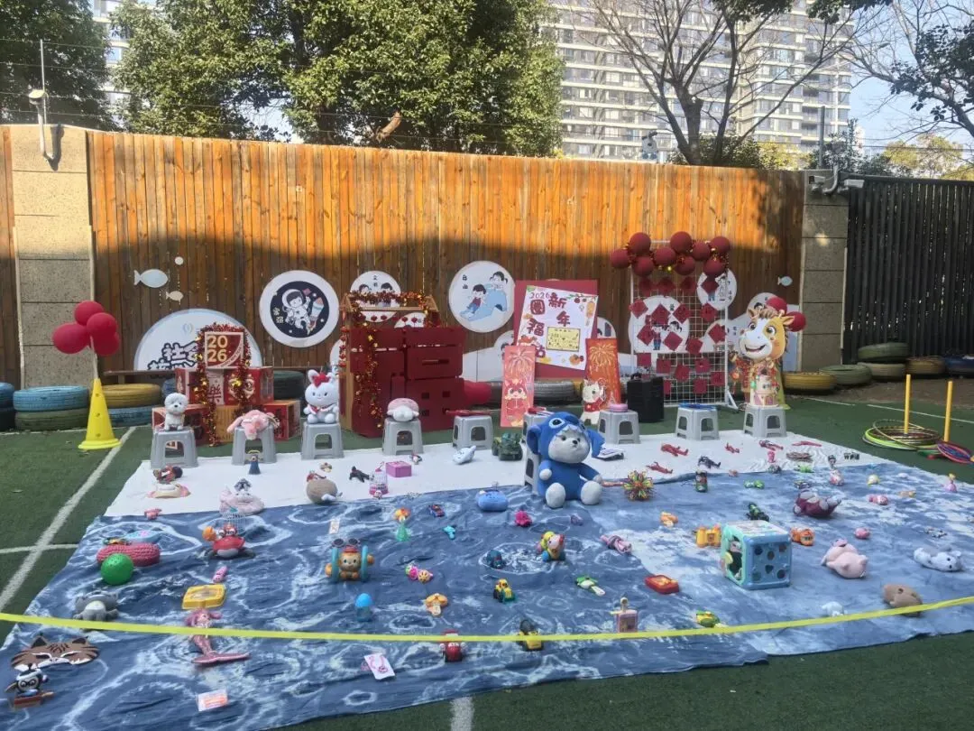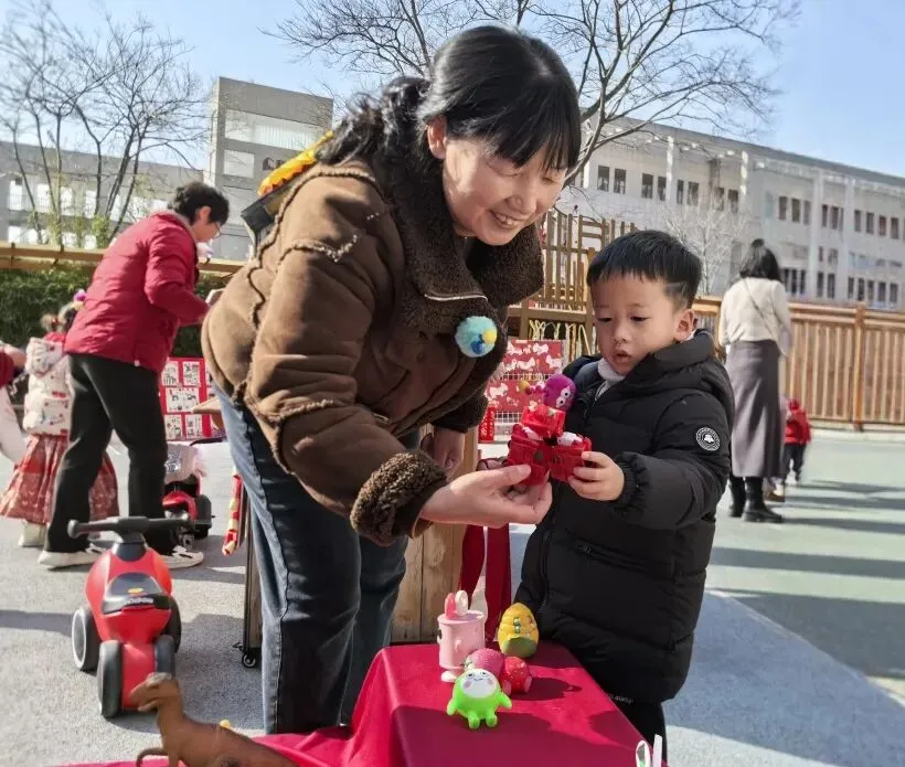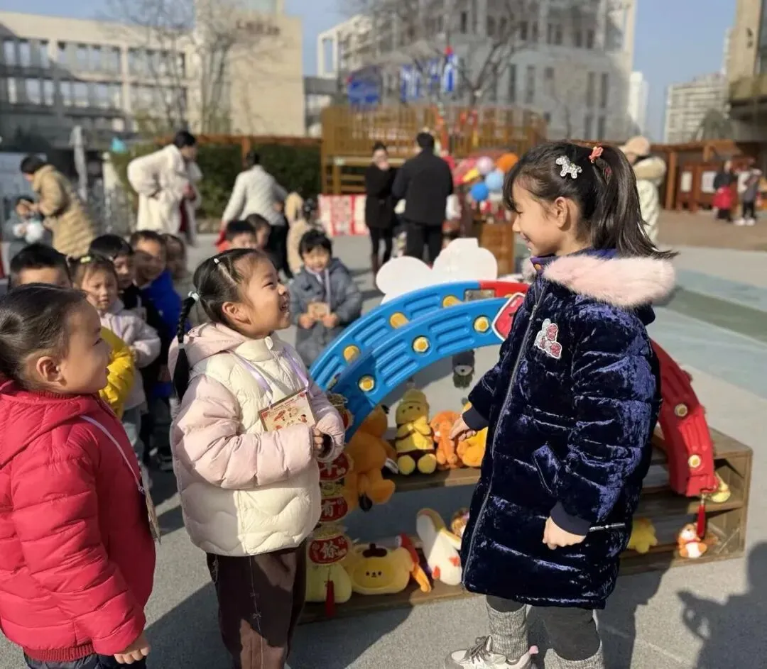 与此同时玩具摊和手工艺品摊前也热闹非凡,都纷纷来兑换喜欢的汽车、绘本、滨幼文创贴、福气小马、新年红绳等,将好运和欢喜共同收藏,开开心心的将它们带回家。