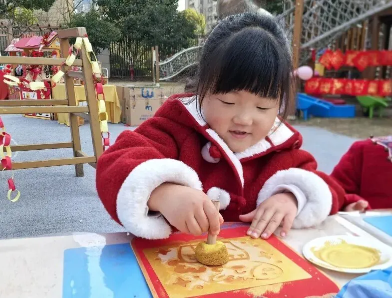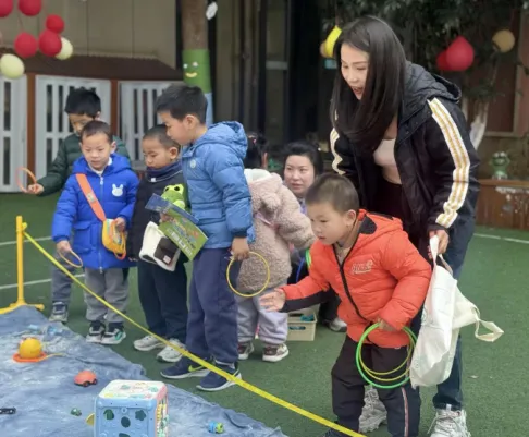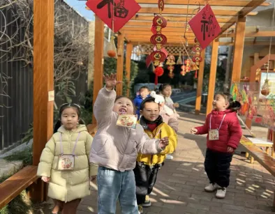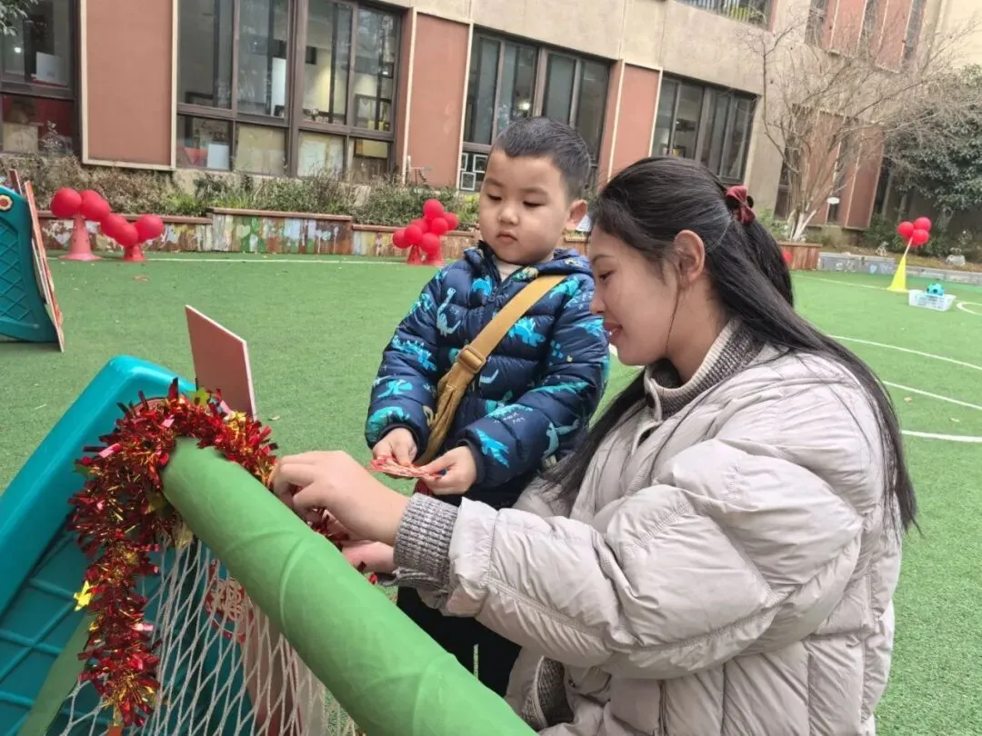 在寻宝的过程中,小朋友们通过滚福气门、装饰小马、寻找红红地物品、说一说新年甜甜话、摘橘子山楂等游戏获得了一张张亮晶晶的兑换券。瞧,小朋友们小脸乐开了花,慢慢全都是完成任务的开心和骄傲。