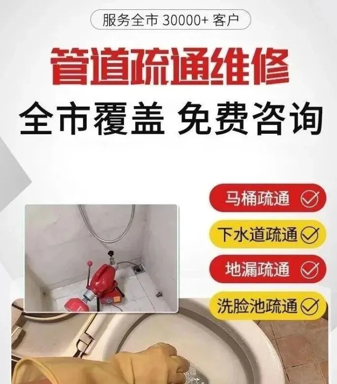 管道疏通:使用专业设备疏通下水道、卫生间管道、地漏、浴缸、菜池、阴沟、马桶、蹲坑等