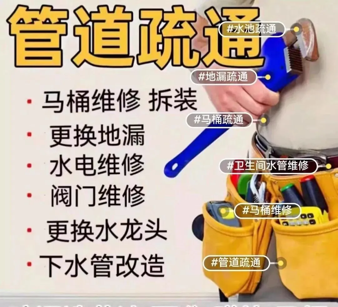 🔄 疏通服务:下水道、马桶、蹲厕、地漏、下水管、脸盆、菜盆、墩布池、坐便器、小便池、主管道。