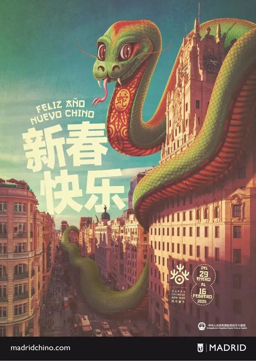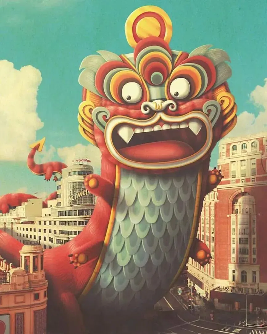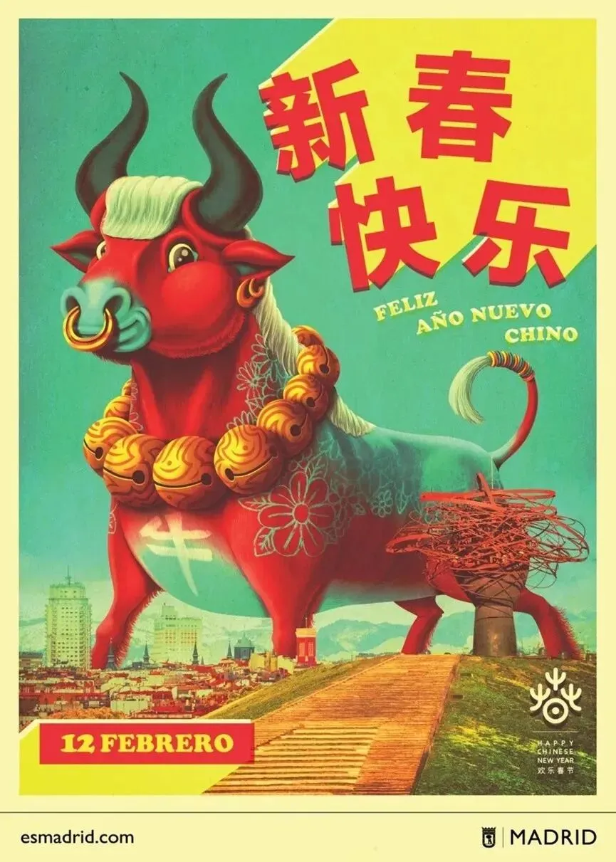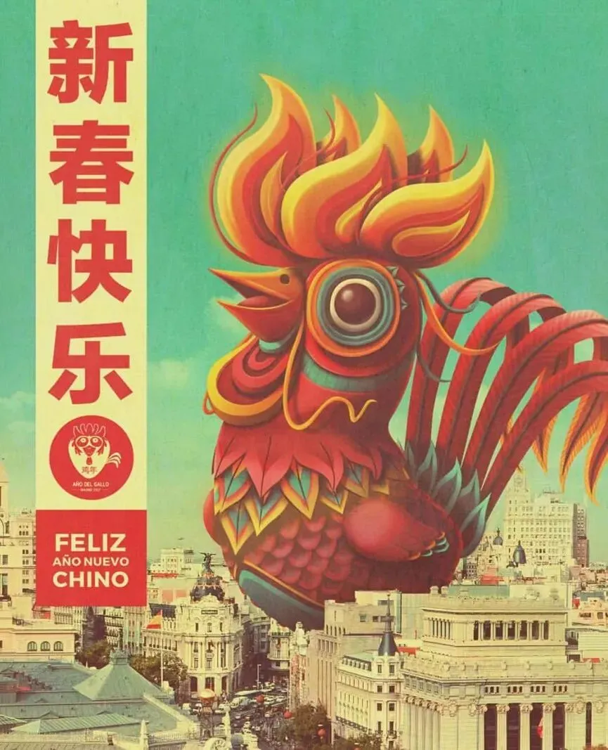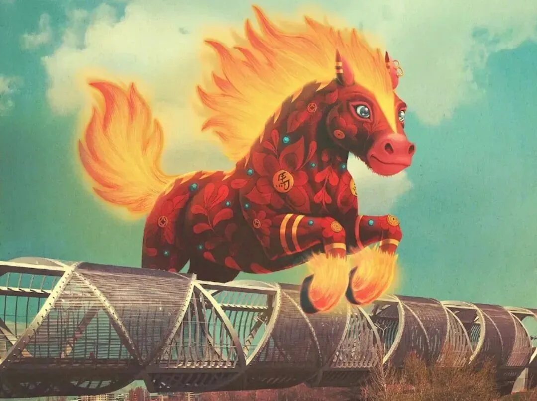 2026年海报的主角是“火马”。画面中,火马仿佛跃过马德里河畔的阿尔甘苏埃拉纪念大桥(Puente Monumental de Arganzuela)。这幅作品由数字插画师胡安·卡洛斯·帕斯(Juan Carlos Paz)创作,他的艺名为 Bakea,西班牙插画师Bakea画额火马,跃过马德里河畔额阿尔甘苏埃拉纪念大桥。中国生肖配上西班牙地标,东方传说走进欧洲街头,迭种跨界额味道,像阿拉从南京西路走到南京东路一样,都是“走着走着,就看到了世界”。👇数字插画师Bakea,十年来一直负责中国新年海报的设计。吾勒嗨想:阿拉囡迭戈解释背后有心思——囡囡先是卖个关子(“等一下”),随后发来一段正正经经额科普。迭种“先让侬等一歇,再认真告诉侬”额节奏,像极了小辰光囡恩问吾问题,吾查好资料后讲拨囡听额样子。现在反过来了,囡讲拨家长听。😂想想真有意思!一家人,两种年味——一边是南京路上额大馄饨配大麦粥,一边是巴塞罗那街头额“火马”跃过大桥。迭戈大概就是现代上海人家额团圆图景:心勒勒一道,人勒勒四方。🫶