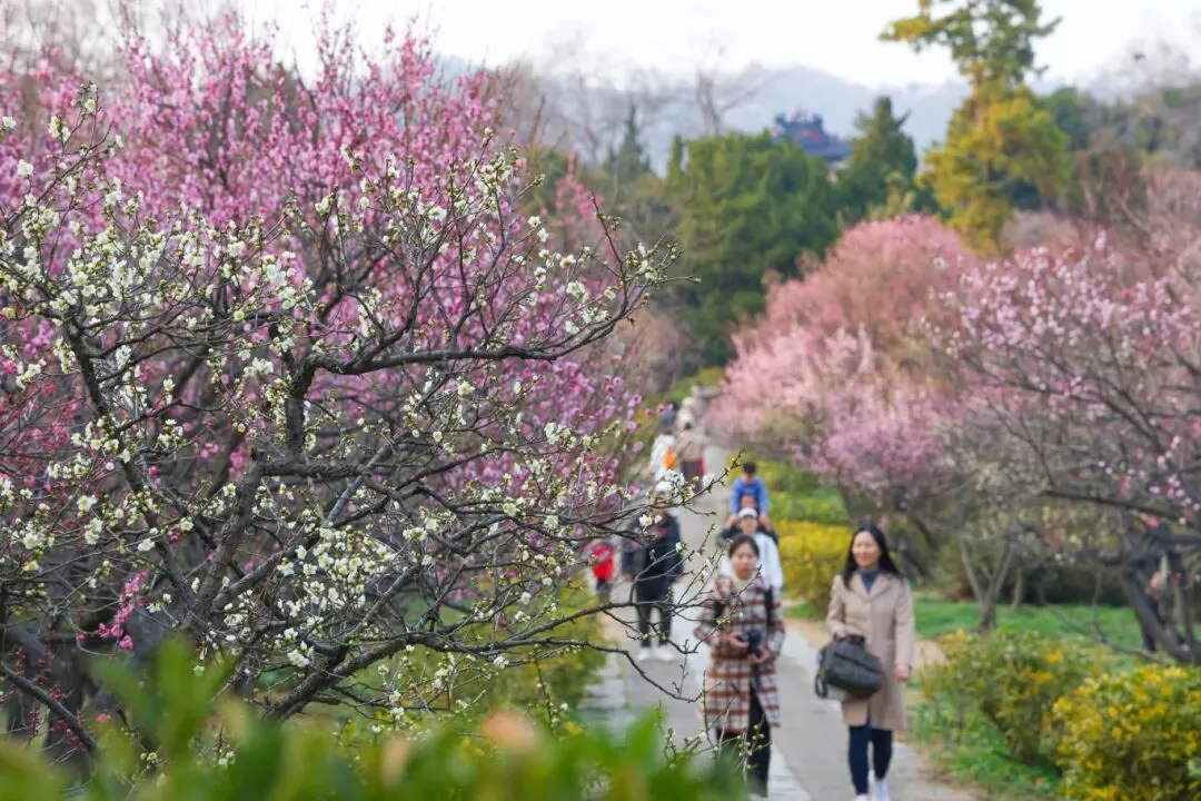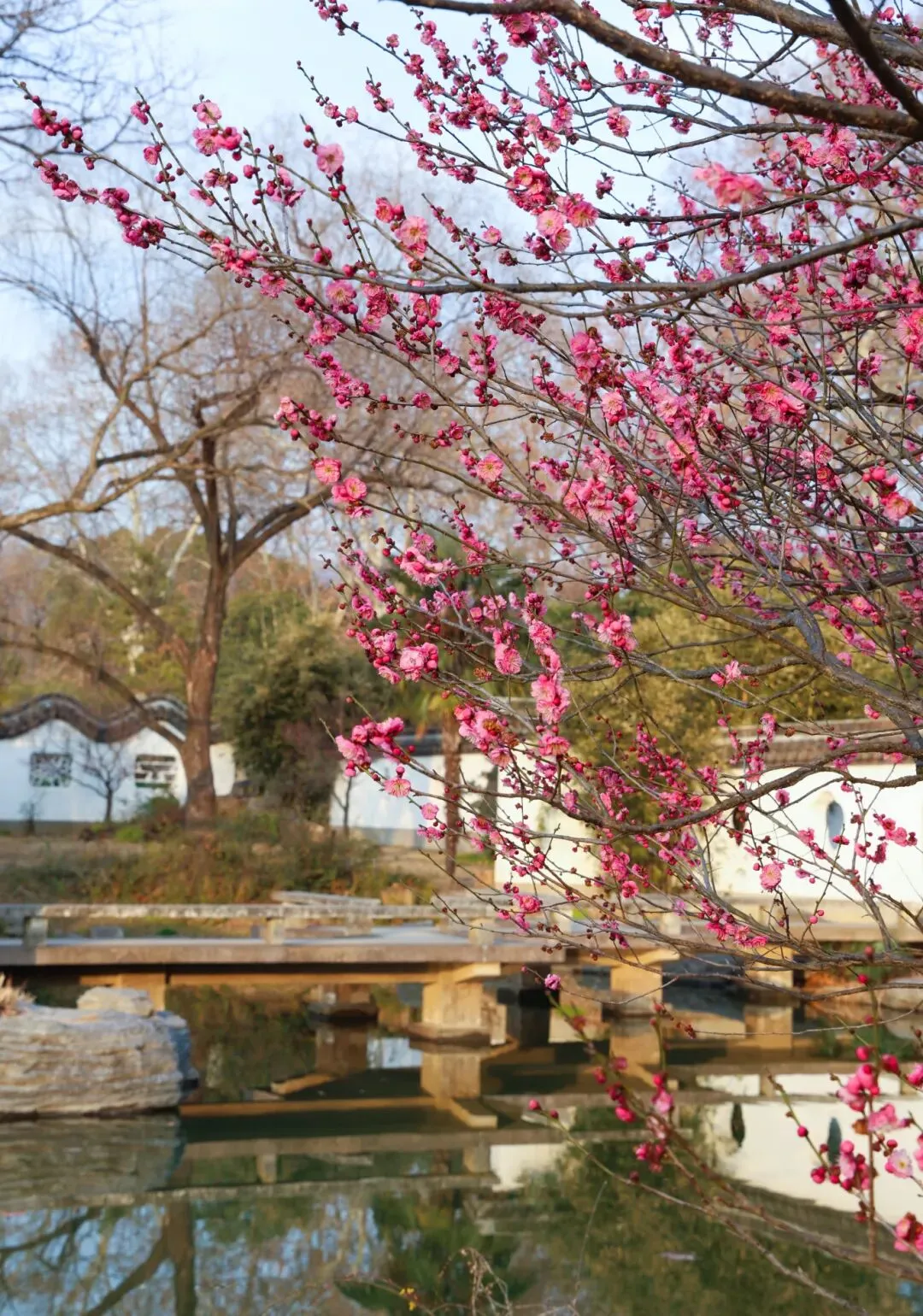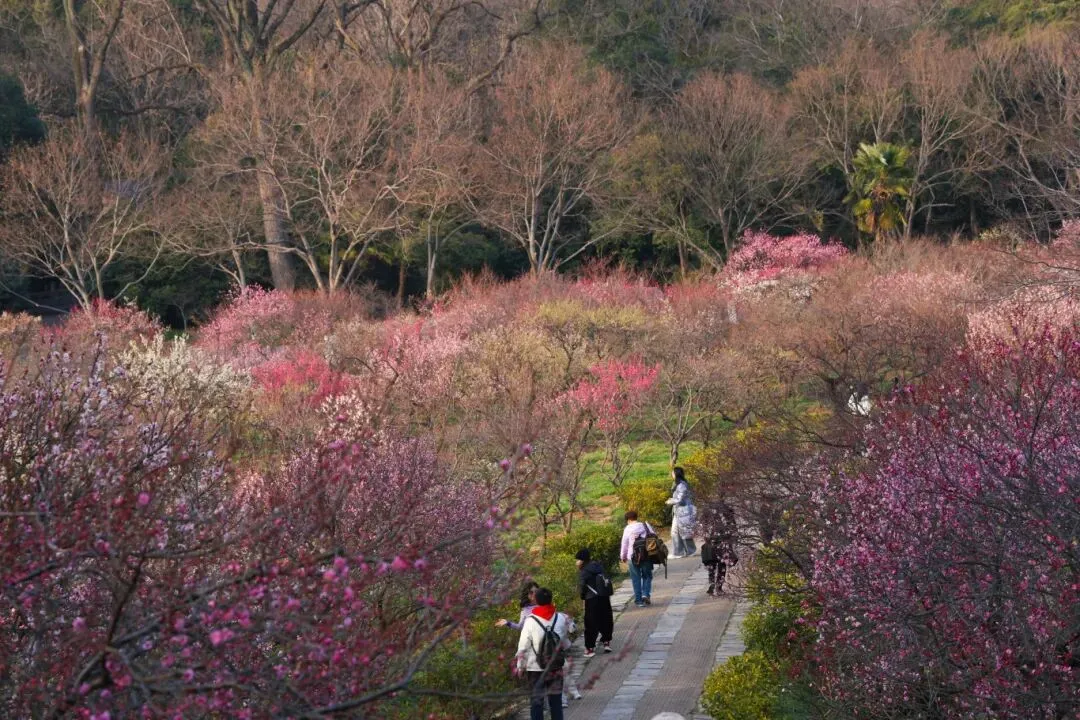 两旁是盛放的梅树清甜的香气若有若无地萦绕在身旁耳边是家人的欢声笑语眼前是满山遍野的“梅”好风景这便是过年最惬意的事了吧