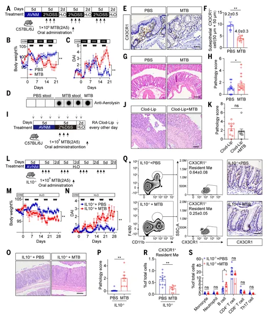 图3.MTB给药诱导了溃疡性结肠炎样表型及免疫应答