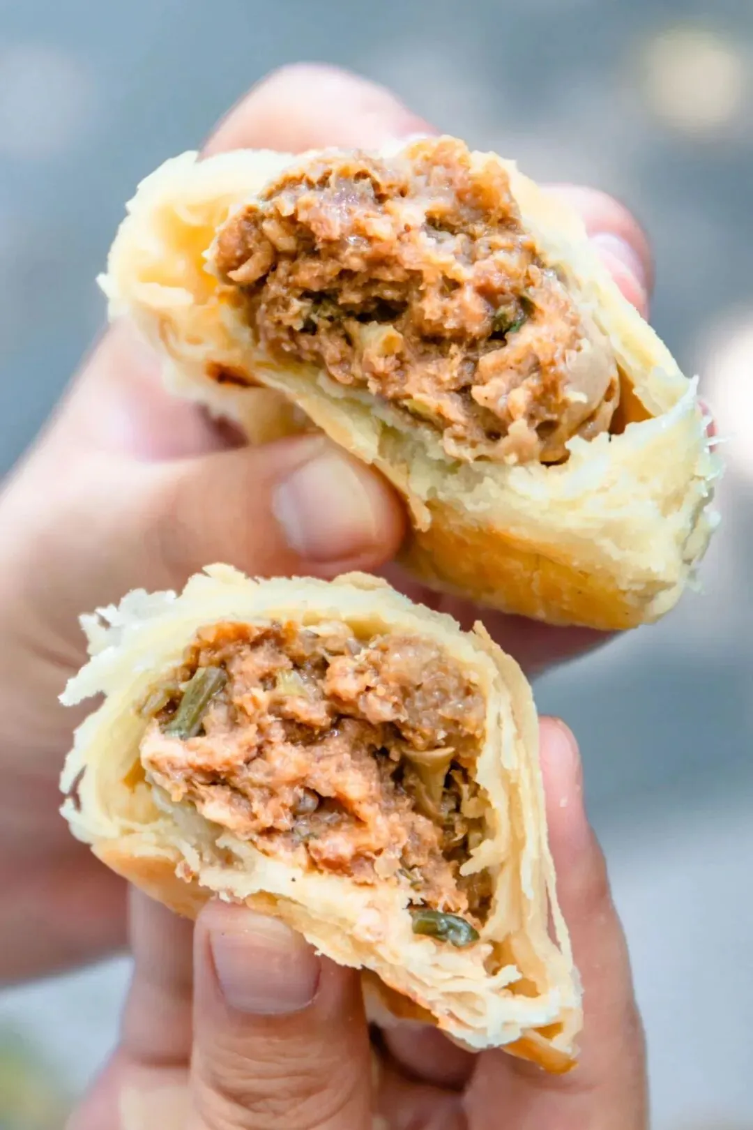 肉松烧饼虽然不大,但肉松馅的扎实程度有目共睹。难能可贵的是肉松不咸不腻,吃下去的时候满口肉香!