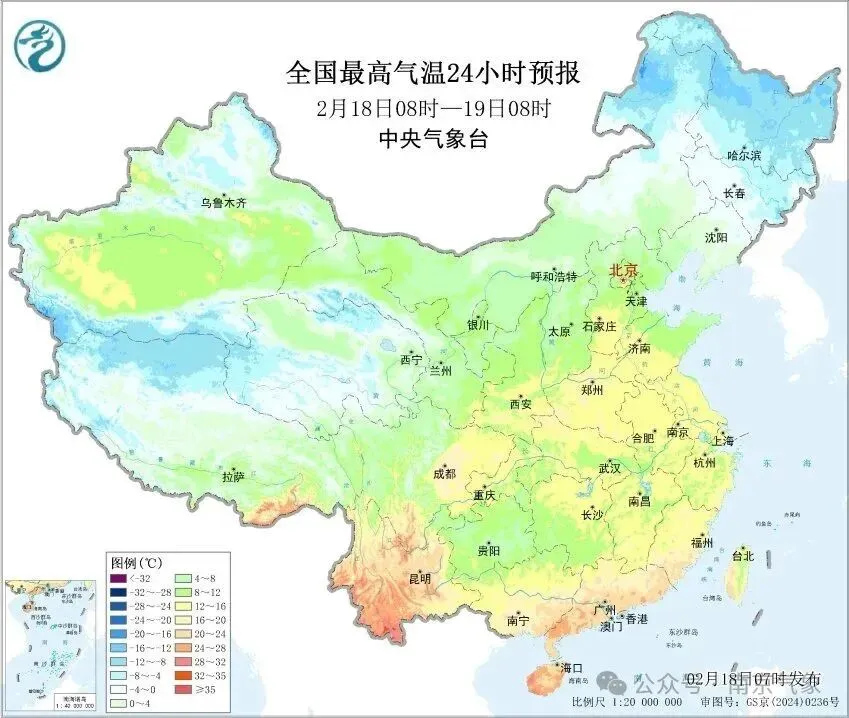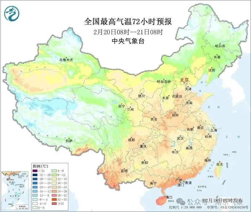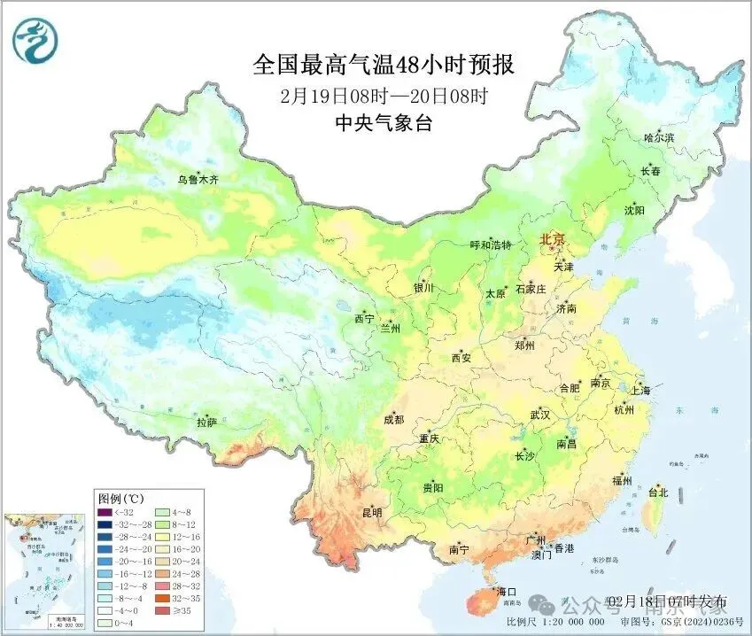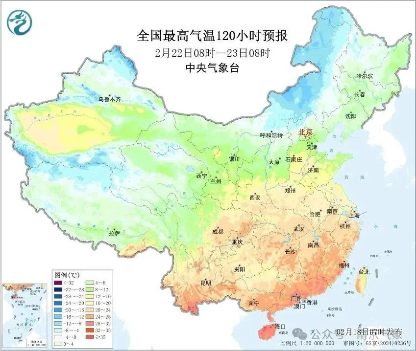 受弱冷空气影响,预计22日(初六)气温有所下降,23日(初七)多云转阴有小雨,48小时最高气温下降约10℃左右。