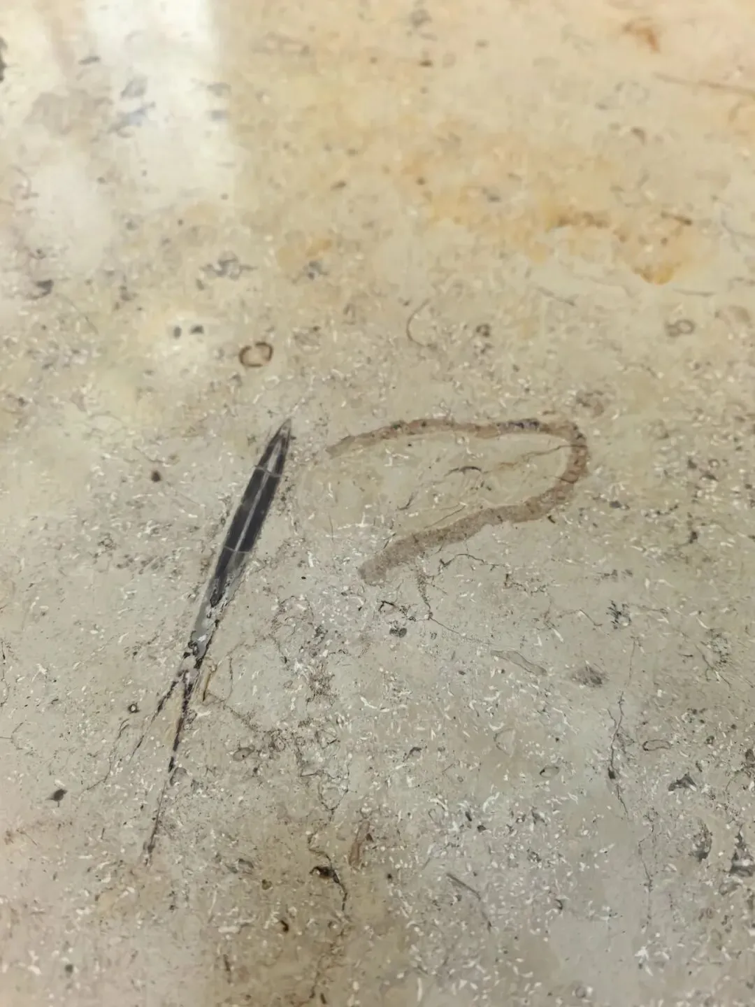日光倾泻而下,穿过悬挂的六朝吊旗,落在地面那片来自德国侏罗纪的海洋沉积岩上——每一块石板都藏着亿万年的海洋生物化石,此刻正与当下的光,完成一场跨越时空的温柔会晤。