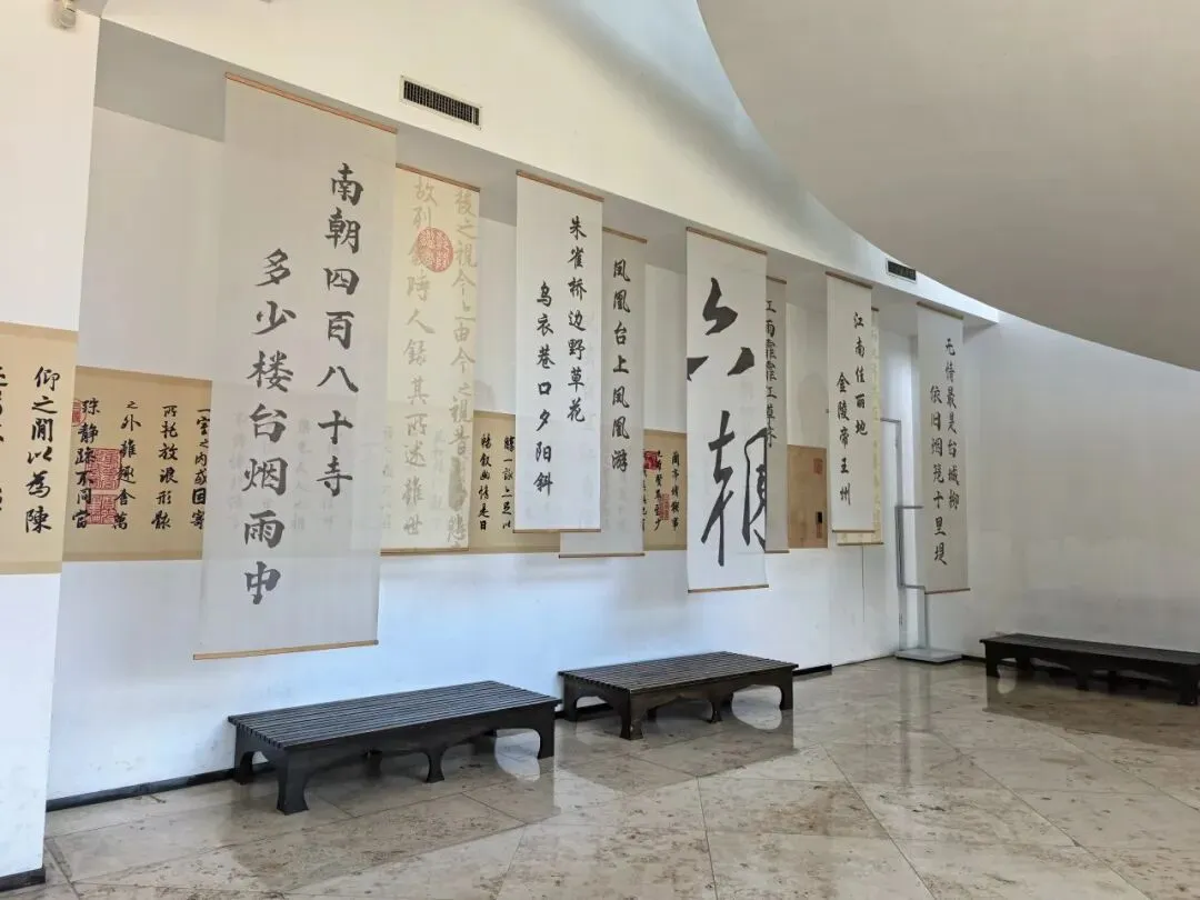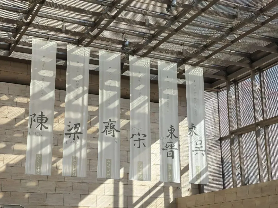 更让人惊喜的是,入口处“六朝博物馆”五个大字,是从王羲之的书法作品中集字而成,取的是书圣行云流水的行书,笔势委婉含蓄、遒劲秀丽,与六朝风流气质浑然天成。每个字皆出自于他《兰亭序》等传世法帖,一进门便让人感受到沉甸甸的历史底蕴与文化美感。