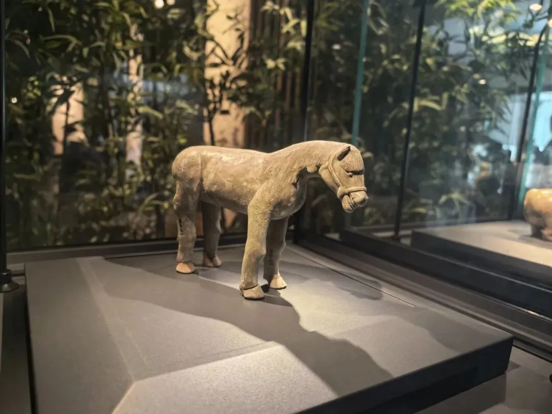 我尤其喜爱那匹网红青瓷“微笑马”。青釉温润,它咧嘴含笑,短鬃贴颈,身姿矫健又神态安然,仿佛下一刻便要载着名士,踏风而去,寻访山水故友。