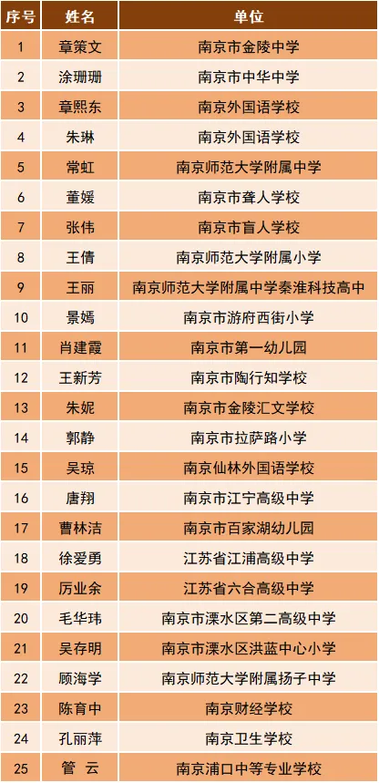 南京市中小学校中,共有25位教师入选