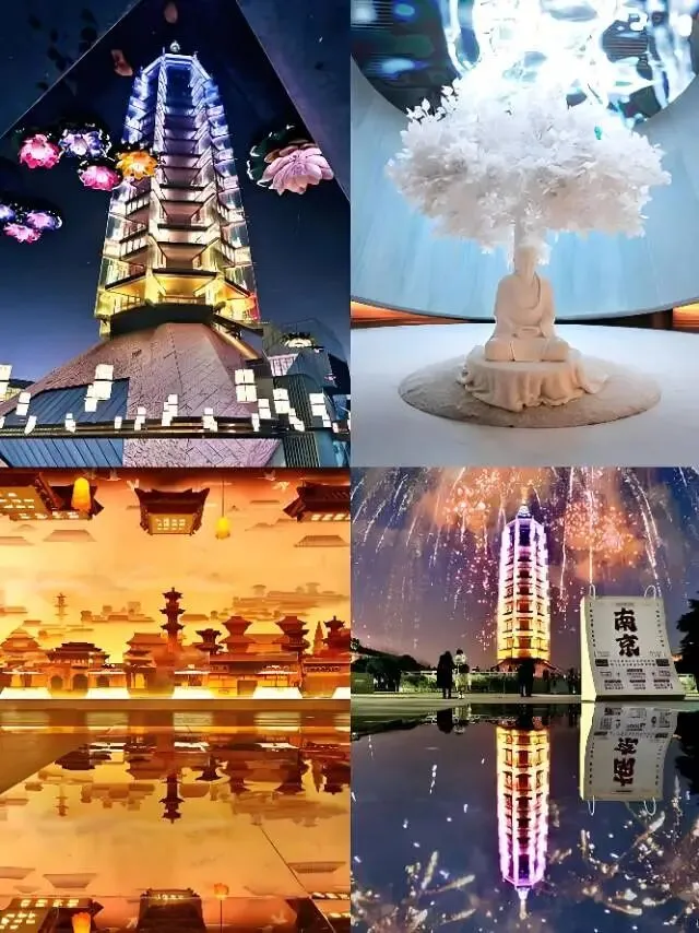 • 历史传奇:明代永乐年间建造的琉璃宝塔,曾以“通体琉璃、夜间发光”闻名世界,被誉为“中古世界七大奇观”之一。如今重建的琉璃塔高93.157米,采用轻质钢架与超白玻璃复刻,外壁镶嵌11万片明代琉璃残片,阳光折射时泛起七彩光芒,夜晚则化身“光之灯塔”,通过智能LED与投影技术再现梦幻佛光。