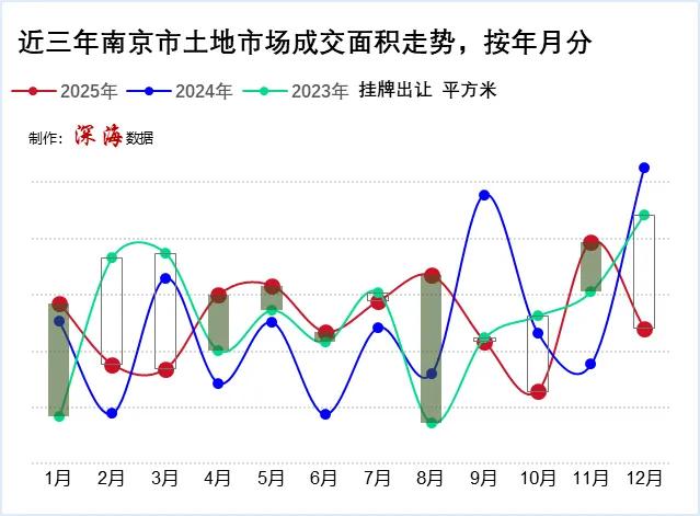 近三年,土地市场成交情况总体走势,按年月分。