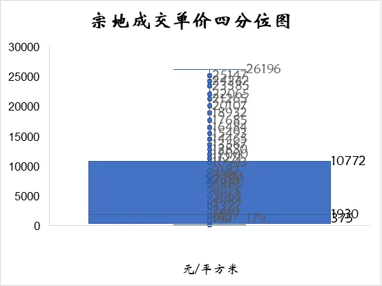 从平均指标来看,成交价格算数平均值为24242万元,中位数为3899万元,成交面积算数平均值为31429平方米,中位数为25519平方米,成交单价算数平均值为7790元/平方米,中位数为1930元/平方米;相对去年同期成交价格算数平均值为20047万元,中位数为2550万元,成交面积算数平均值为30154平方米,中位数为24384平方米,成交单价算数平均值为6494元/平方米,中位数为1321元/平方米(此处与前文总体情况平均单价计算方式不一样)。