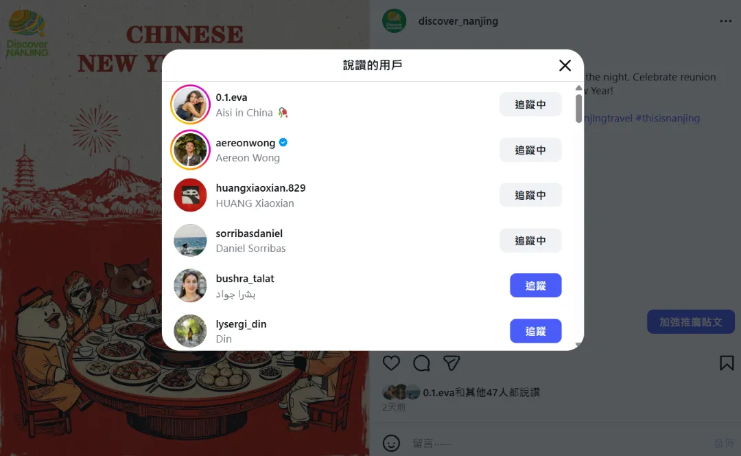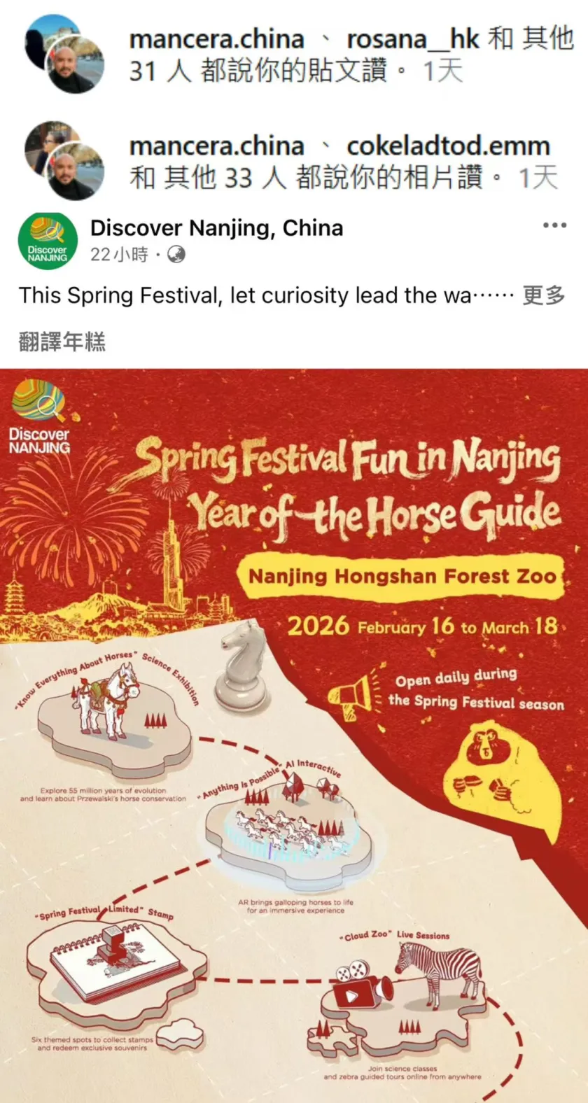 依托Discover Nanjing、iNanjing、Here Is Nanjing等南京海外社交媒体账号精彩呈现,展现南京的多样新春!
