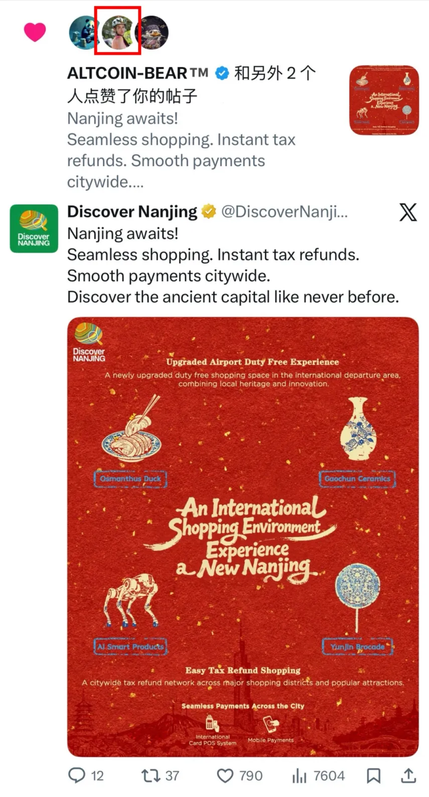 围绕离境退税、特色购物等外籍人士春节来宁消费的利好政策,DiscoverNanjing推出信息海报,精准击中海外游客的需求点,收获了哥伦比亚旅游运动博主等多个国际友人的点赞,帖文累计曝光量突破10万次。