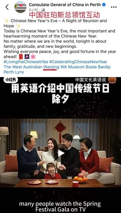 春节前夕,中国驻珀斯总领馆发布除夕节日介绍视频,并在线上与南京进行互动。iNanjing推出的双语视频《这波“国际范”新年祝福,南京请查收!》春节期间在海外上线,芬兰驻上海总领事、法国音乐剧《莫里哀》主演亚尼斯、爱尔兰《大河之舞》主演费格斯,以及众多在宁国际友人,用不同语言向南京送上“新年快乐”,播放量达2.5万次,爱尔兰舞剧《大河之舞》主演费格斯、法国音乐剧《莫里哀》主演亚尼斯点赞并转发。