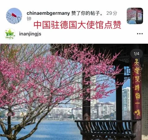 iNanjing推出的《来南京,全城偶遇“福”窗》视频,播放量超4万,点赞互动约340次,被中国驻德国大使馆点赞。