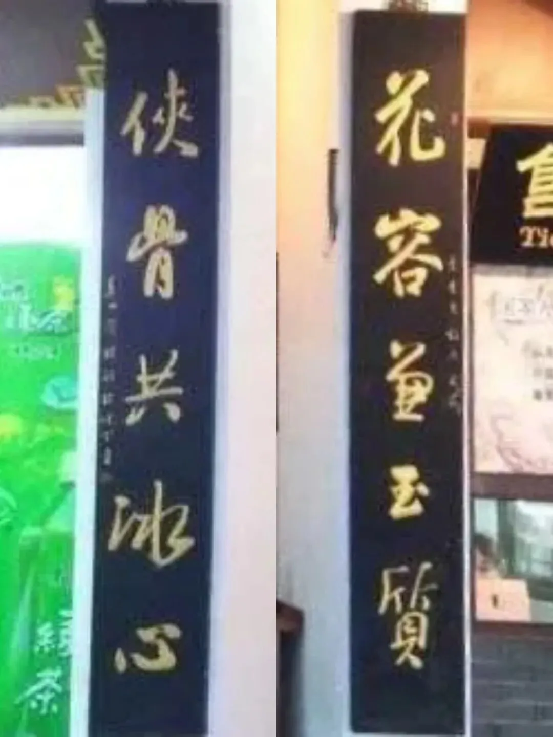 门联“花容兼玉质;侠骨共冰心”, 撰联:苏振学(在2004年夫子庙楹联街征联活动中获二等奖),书写:姜必荣(书法家)。