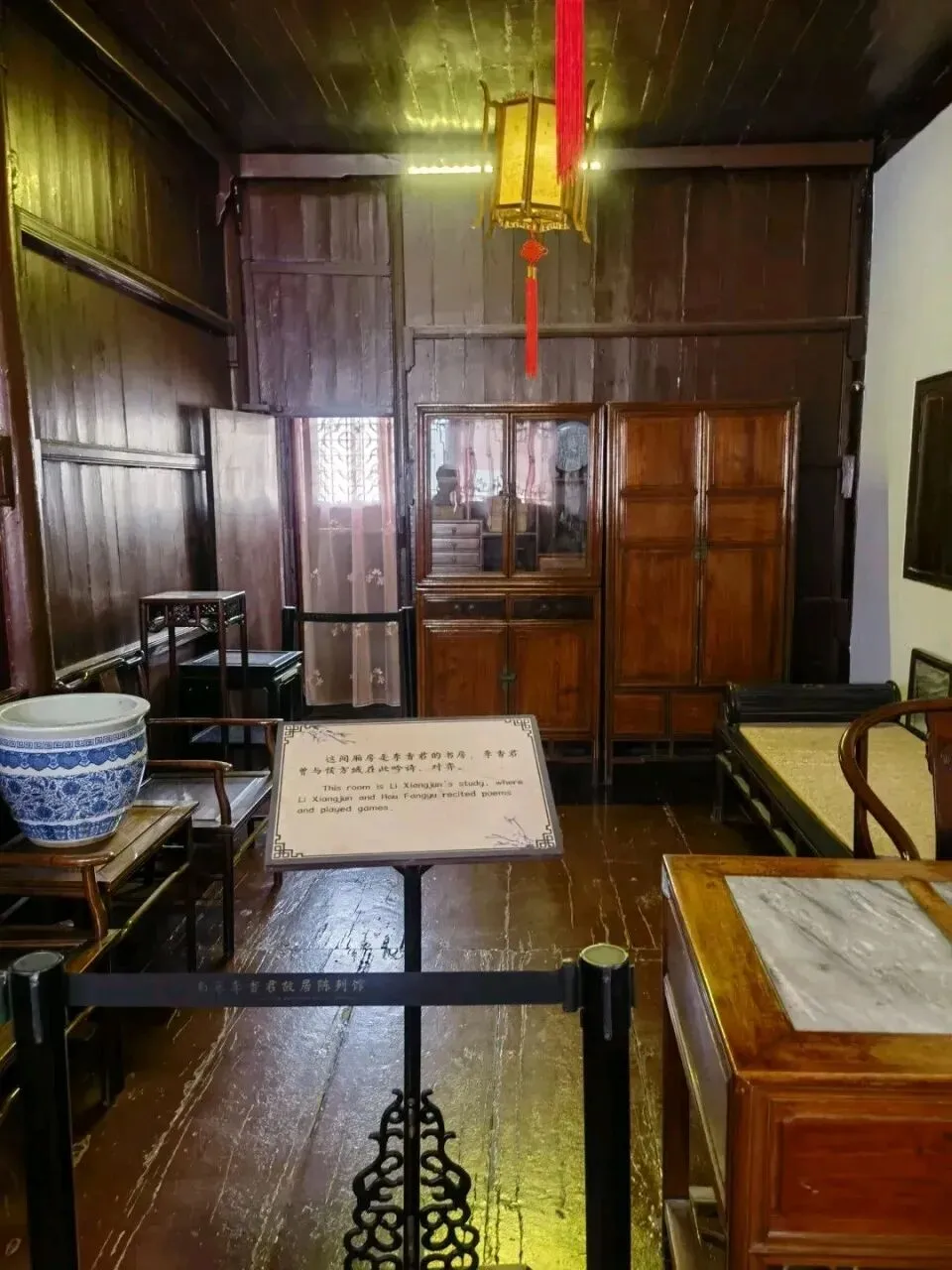 故居内有“秦淮八艳”史料陈列馆,展出了柳如是、马湘兰等“秦淮八艳”的生平。同时还还原了李香君的卧室、书房、客厅和琴房等生活场景,此外,还展示了书法、绘画、楹联等艺术精品。