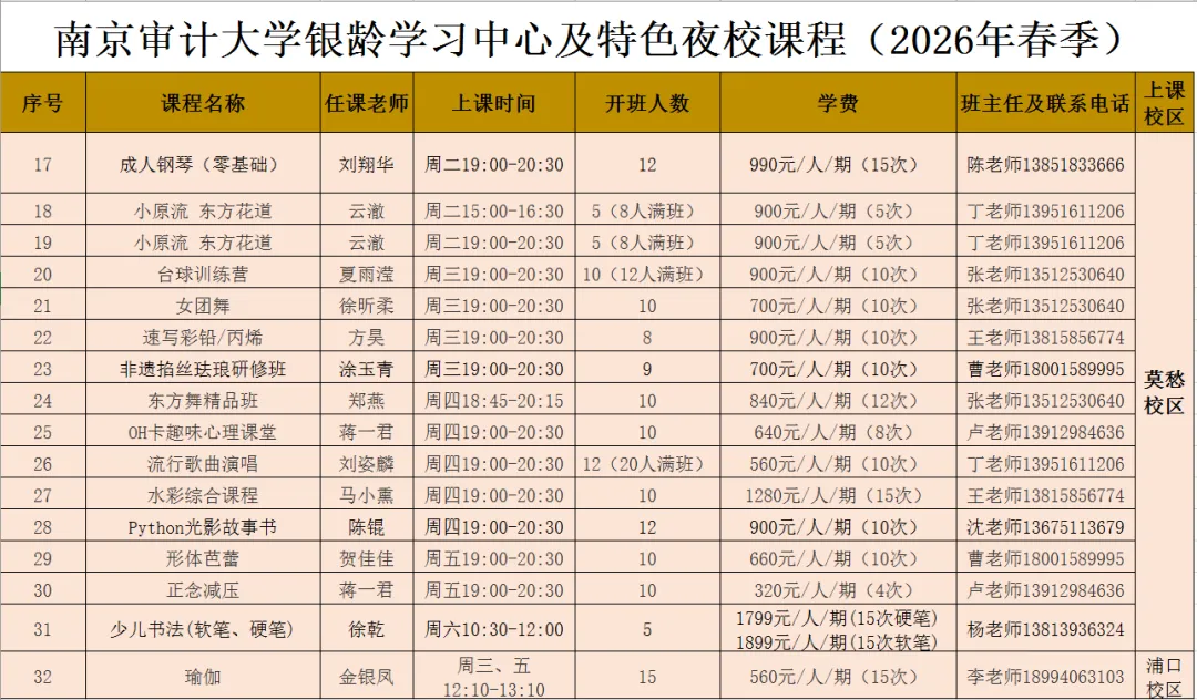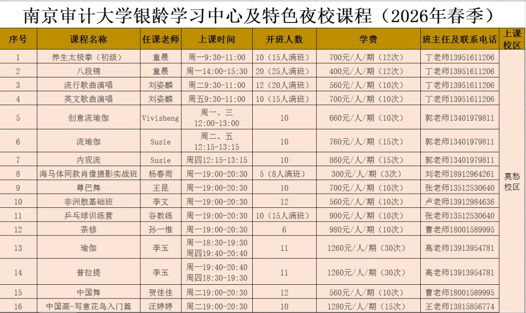2026年南京审计大学银龄学习中心与特色夜校