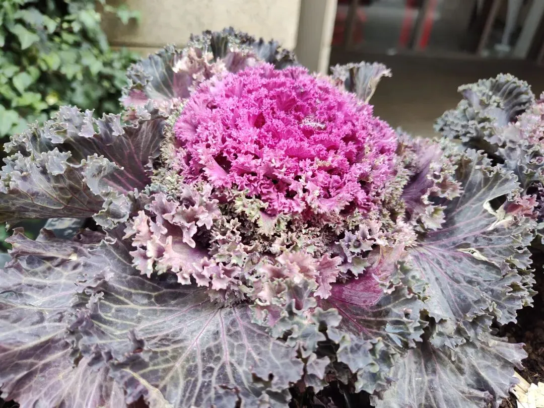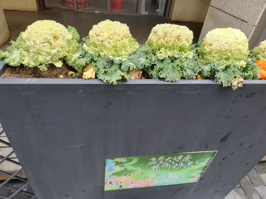 这竟是羽衣甘蓝,老咪常吃的蔬菜,它是一种观赏性很强的植物,叶片形态美观且色彩丰富,常被用于园艺景观布置等。