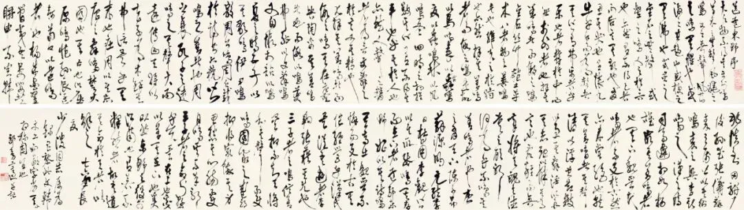 在50岁以后的10年里,二适先生一面溯流探源,撰写《新定急就章及考证》一书,一面专攻章草,以改变自己的书法面貌。为了师“章”而不囿于“章”,他探索如何将章草同钟王楷书、二王行草结合起来:点画瘦劲、结体多样,力求严谨中见力量,平实里出险妙,凝重处显生动。为了出入古今、“变”古出新,他在60岁以后继续从各个角度向传统学习,反复临写汉隶《杨淮表记》《西狭颂》,楷书《贺捷表》《黄庭经》,行书《温泉铭》《李贞武碑》和王羲之、张旭、怀素、杨凝式、宋克等人的草书。至65岁以后,真、草、篆、隶已无所不能,且已融会贯通,开拓出能充分发挥自身优势的独特风格:以魏晋楷行为基础,得皇象、索靖之精髓,守钟、王之神韵,取汉隶之骨格,化杨风子之风采,借宋仲温之姿态,形成一种一分隶、二分楷、三分行、四分草的“高体”。其草书“亦章、亦今、亦狂”,将章草之严谨厚重、今草之典雅俊爽、狂草之飞动纵逸熔为一实是有师、看似无师,已经突破前人窠臼而自创新炉路了。如他70岁前后所书《湘娥诗》《送孟东野序》《秋兴八首》等墨迹,都有一种古拙而灵动、苍劲而洒脱的风韵。用笔上,楷书之提按顿挫与草书之转折牵连并用,时而笔锋直落,时而逆入平出,时而笔毫平铺,时而藏锋回转,点画干净利落,线条刚健绰约;结体上,章草与今草的结字法被交叉分合,蟠曲之中更见渊厚沉郁;布白上,一气贯通,字字形断而意连,虽大小错落、斜正相间,皆揖让有致、顾盼生姿,密处尤多奇肆,疏处倍添神采,显示出精湛的艺术造诣。