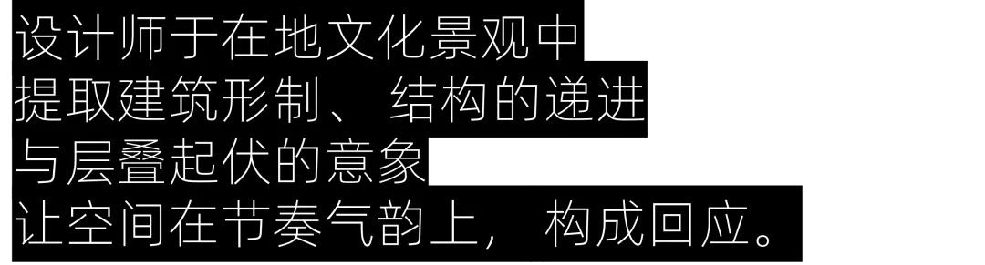 设计师在此基础上提炼精髓,将江南贡院中轴线上明远楼的斗拱、梁枋结构与几何纹样融入立面设计,借助古建梁柱形成框景构图。