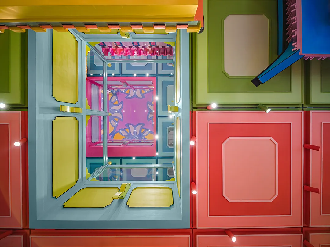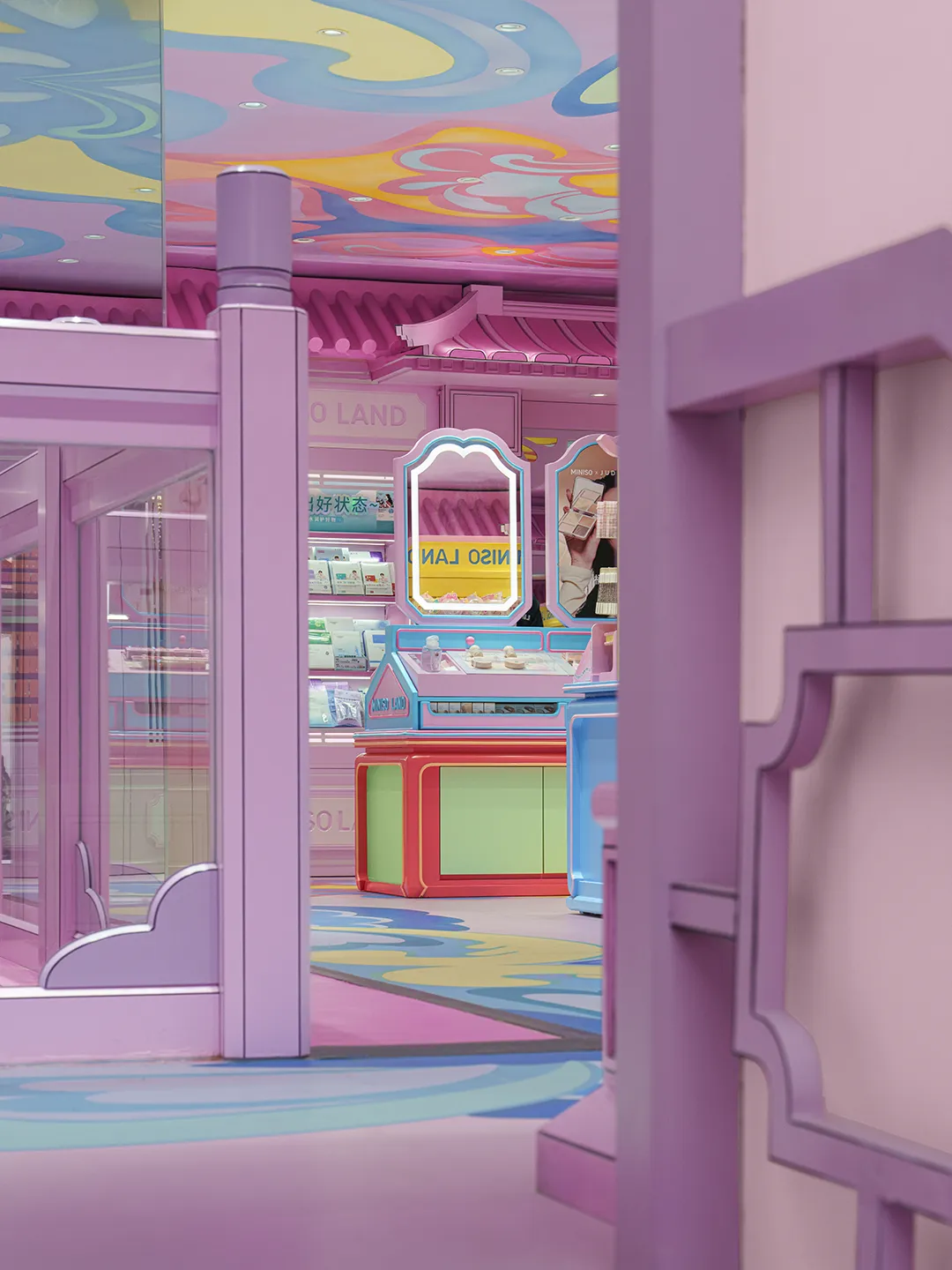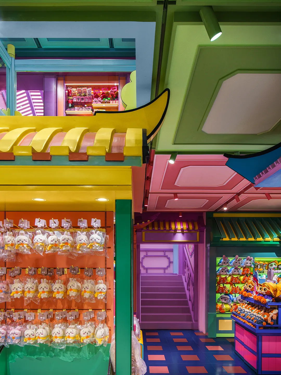 基于历史街区的古典美学根基,设计师以先锋的语言与幻彩笔触,转译传统建筑的空间智慧与文化肌理。不拘泥于形式摹写,而重在凝练其意境神韵,构建出一个既扎根东方美学、又跃向未来想象的潮玩体验场。