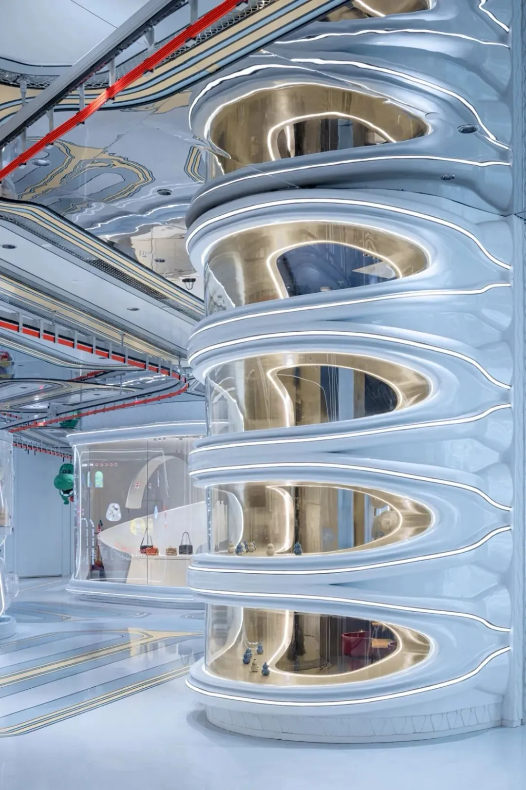 设计师拒绝历史文脉沦为商业点缀,亦反对零售空间失却温度。不盲从潮流堆砌符号,以锋利而克制的设计表达,将江南古建文化、古都城市烟火精准转译,让其与潮玩消费需求、零售运营逻辑自然交融,而非刻意嫁接。在平衡三重价值的过程中,完成对商业环境革新的专业诠释。