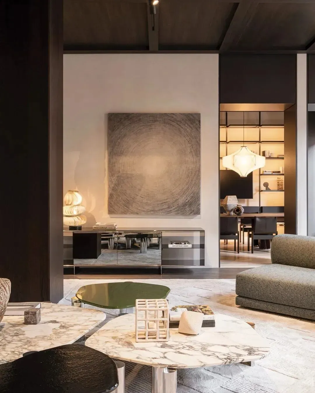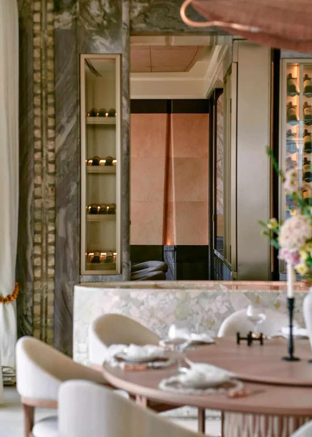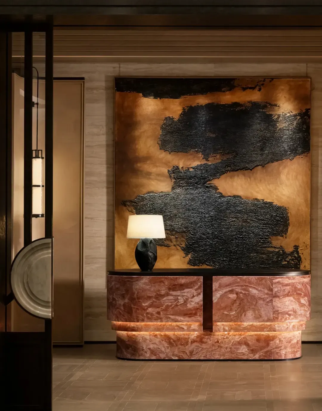 岛台、货架由明清家具演化而来,设计师提取镜匣、宝奁、博古架等经典器型的结构逻辑,作为现代陈列,器用之物成为空间叙事的一部分。