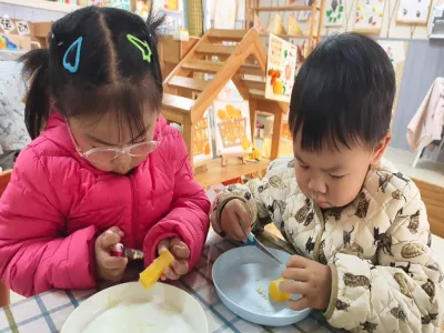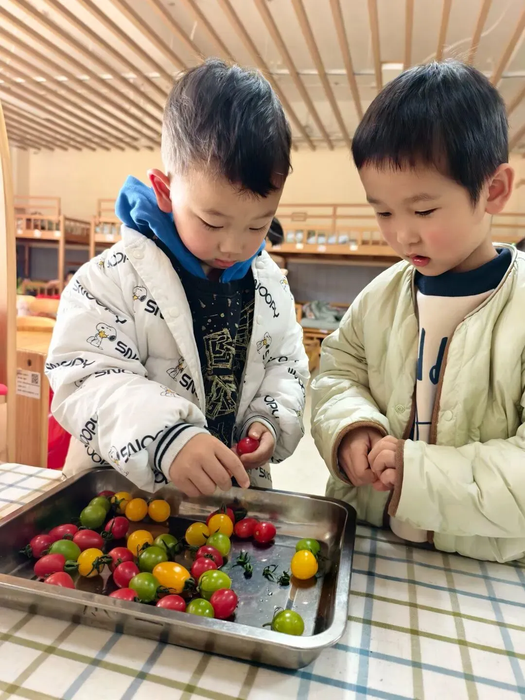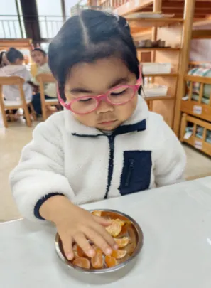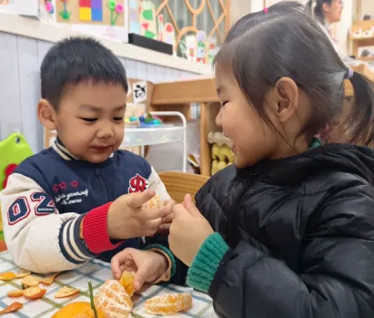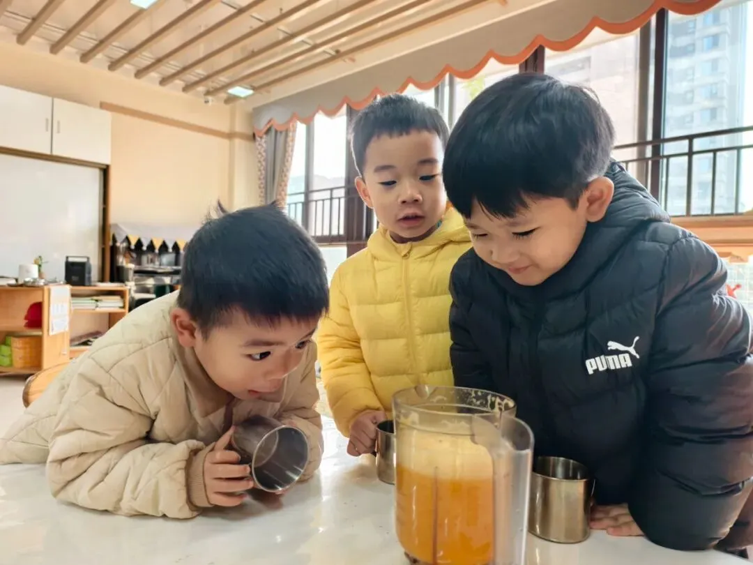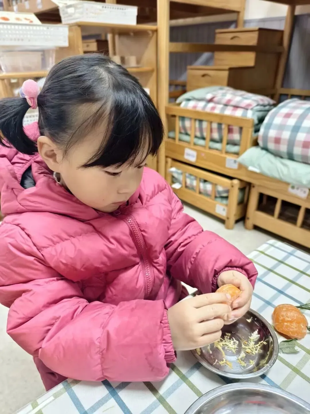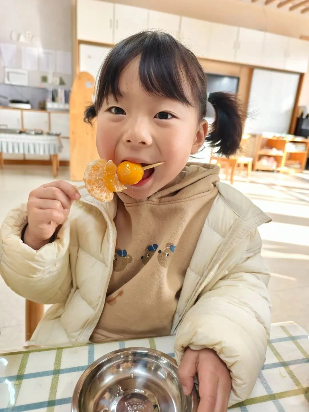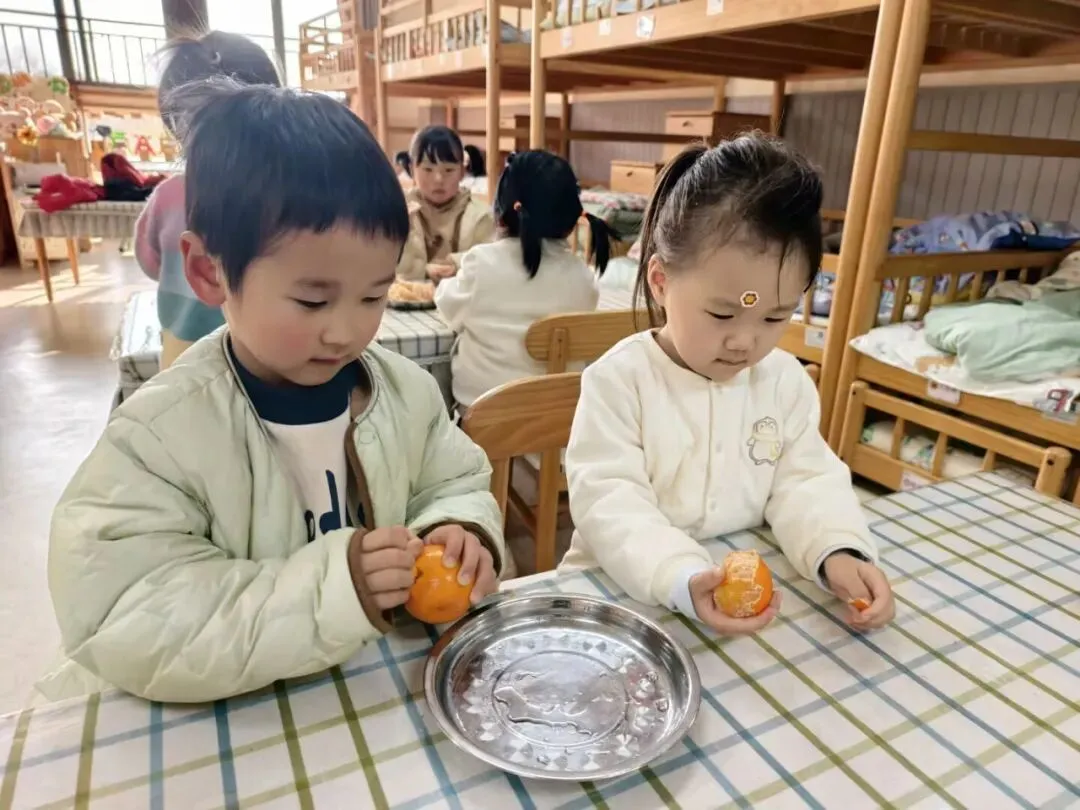 小一班的宝贝们用小手触摸自然,用感官探索奥秘,在沉浸式体验中感受橘子带来的不同乐趣。