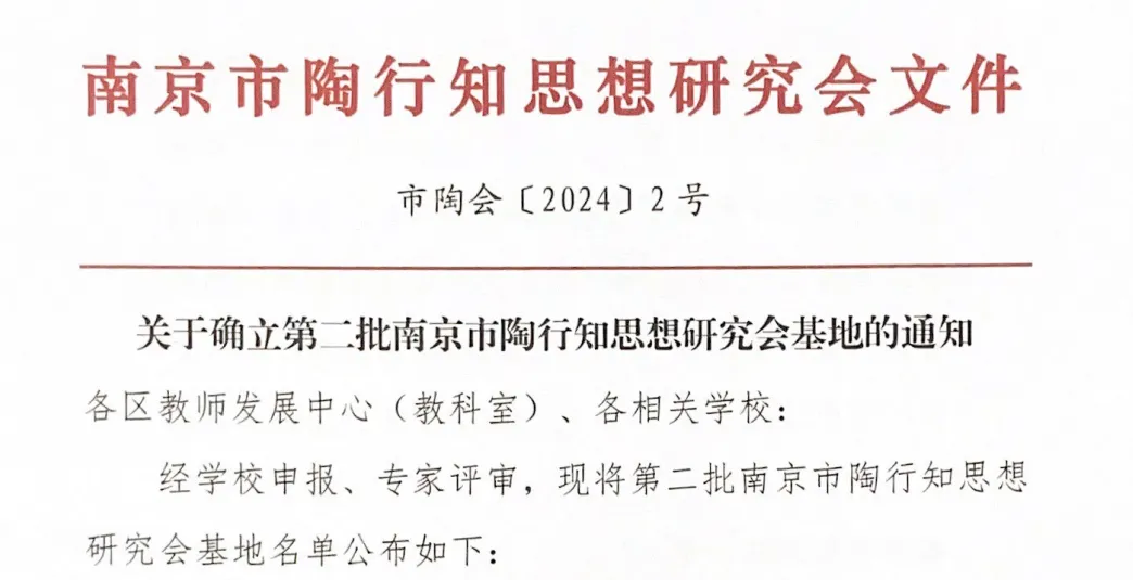 热烈祝贺我园成功获批“南京市陶行知思想研究会基地”!