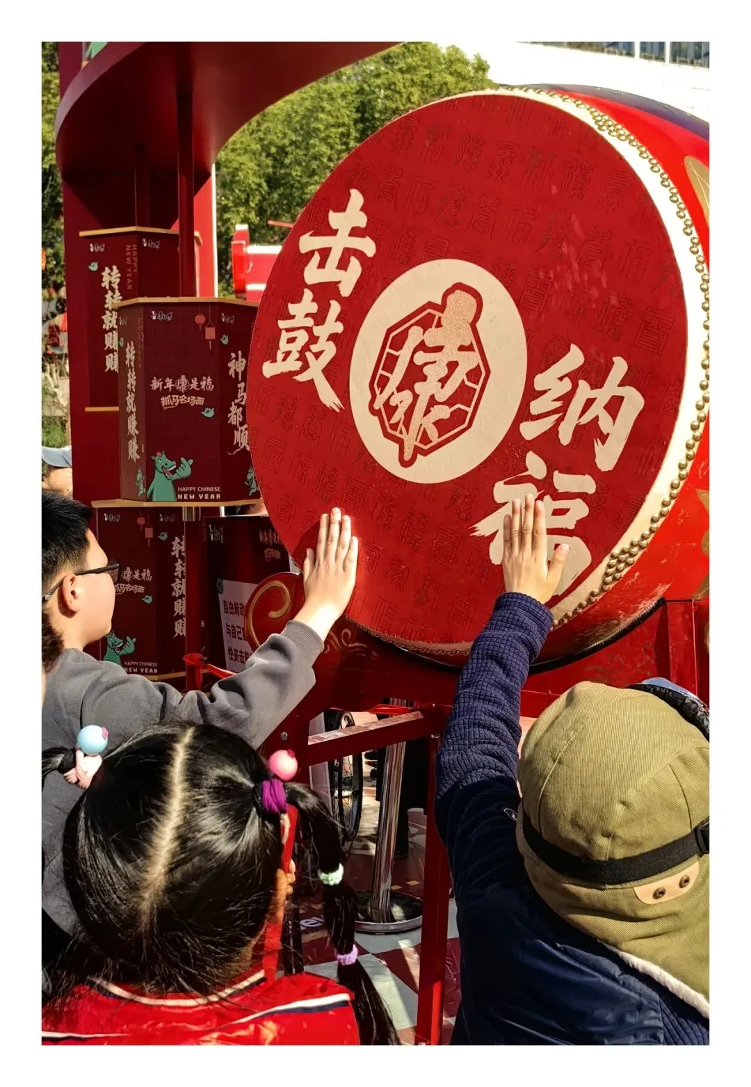 在热闹的市集里,国潮文创亮眼吸睛,特色小吃香气四溢,运动互动区人气爆棚,马年主题装置处处可见,随手一拍都是年味大片。