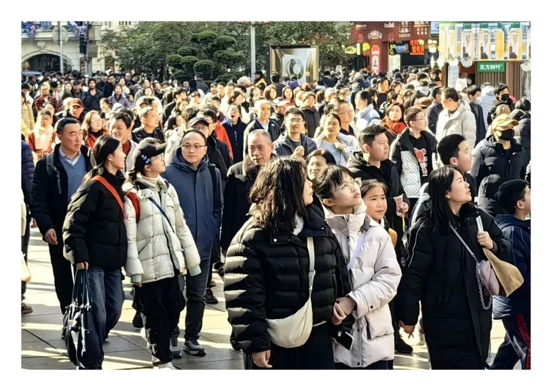 年轻情侣并肩而行,举着手机定格街头美景,推着婴儿车的父母驻足停留,笑看街头热闹的表演,五湖四海的乡音与欢声笑语交织在一起,汇成一曲最动人的新春交响。
