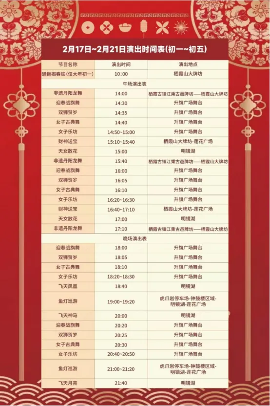 在此附送上一张栖霞山演出时间表: