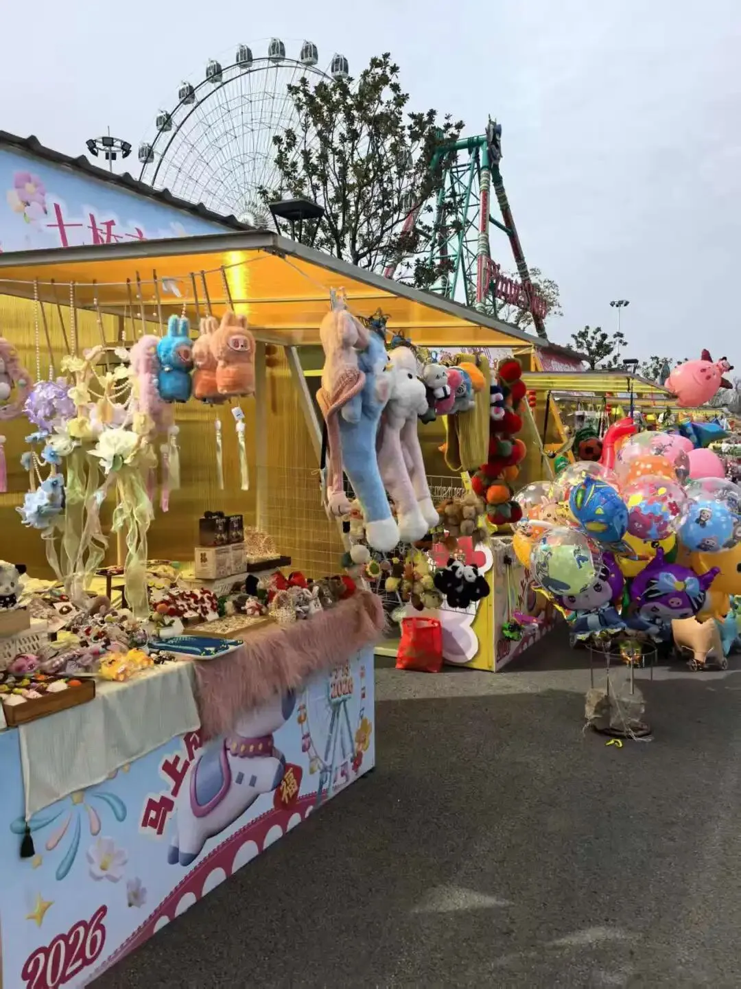 走进公园,伴随着音响里欢快的“恭喜发财”歌曲,以及欢乐的打气枪和集市的吆喝声,不禁感叹这才是热热闹闹的过年。