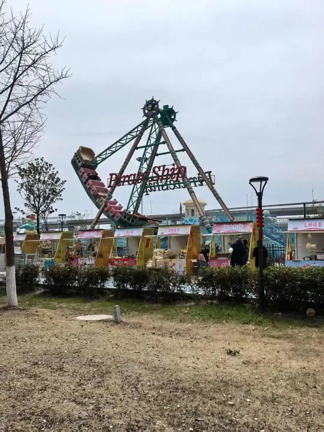 游乐园里的人也不少,海盗船上不时传来兴奋的惊吓声。