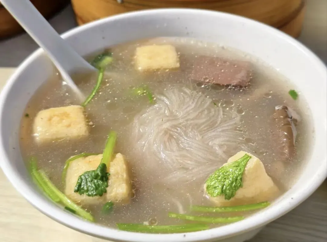 鸭血粉丝的汤是浑汤派,相对清汤派油脂更足、味道更浓郁。