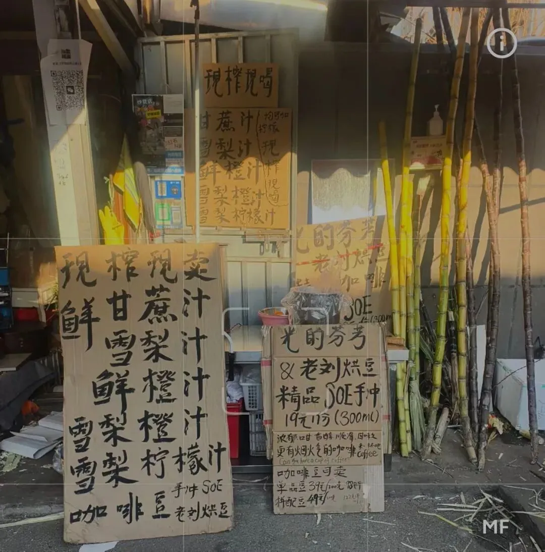 不过当天天太冷了,咖啡摊没有出摊,水果店老板将我拉进咖啡老板的微信群,说出摊时间会在其中告知。他又推荐我去附近光的芬芳咖啡馆喝,说是同一家老板,豆子也是他炒的,品类更多,价格贵一些。我没有去,准备还是等摆摊了去喝,更街头、更地气、更好玩儿。