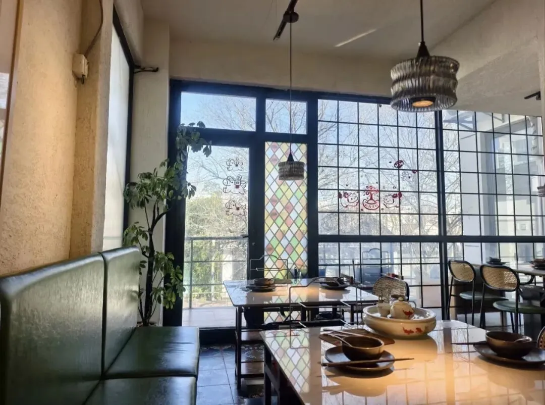 沿着木质楼梯上去,是气息很好的一家店。冬日阳光从大扇的格子窗薄薄透进屋子,复古窗花静谧的红绿黄映在方桌上,令时光有一种半旧质地,清洁则让整个空间有着清朗感。