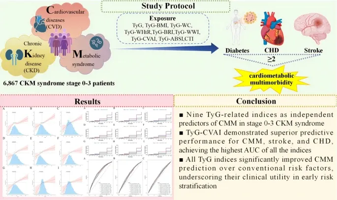 ✅聚焦 0-3 期 CKM 综合征人群,首项系统对比 9 项 TyG 相关指标对 CMM 的预测价值,填补研究空白。