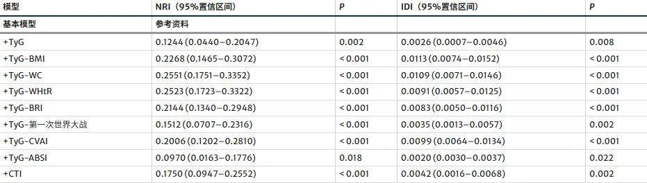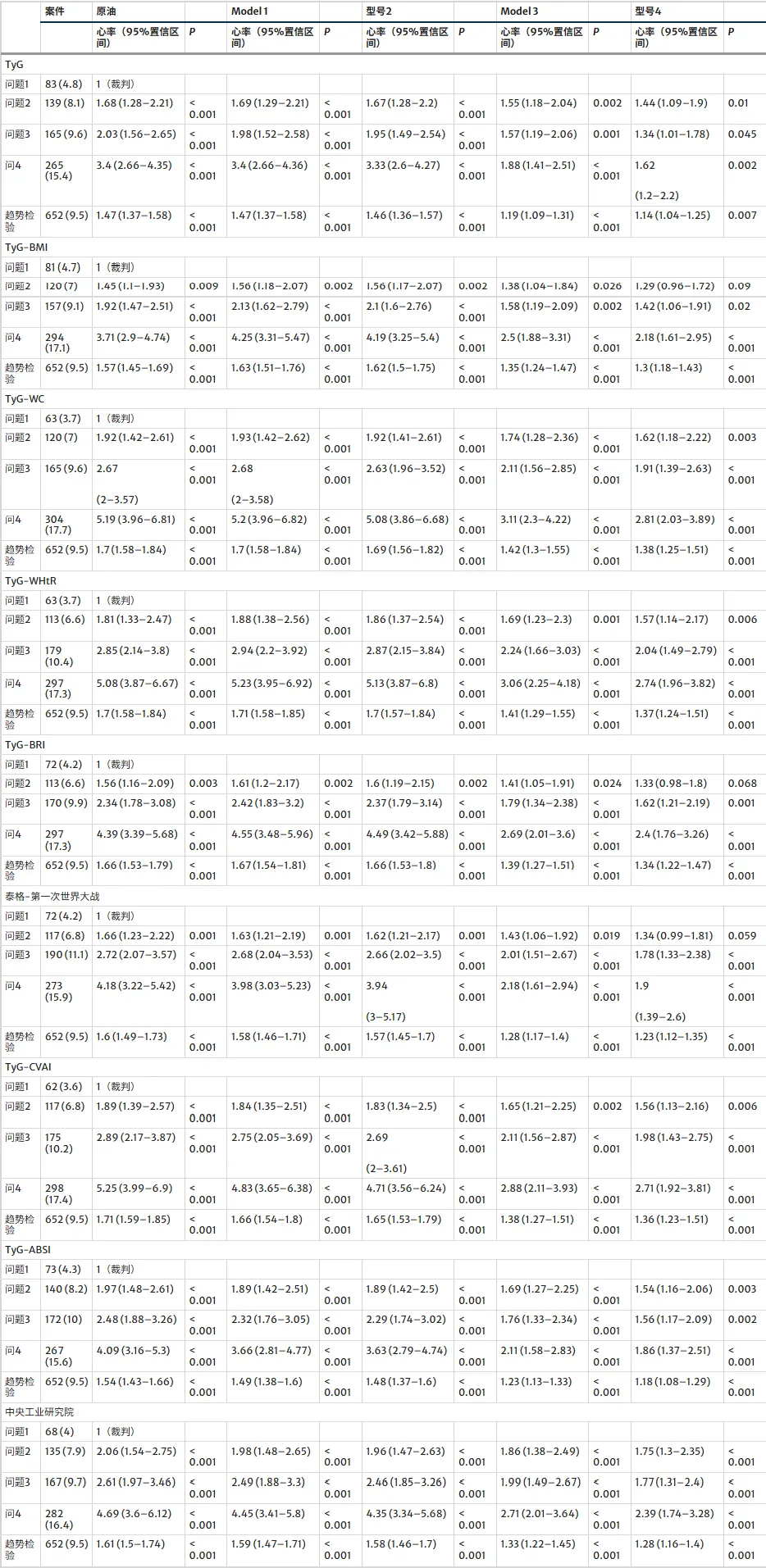 表3 TyG相关CMM指数在基本模型上的增量预测值