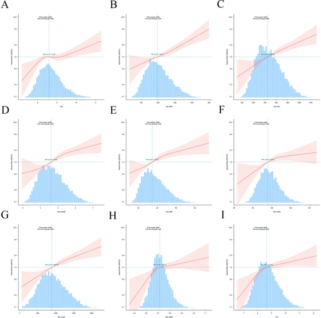 图1 TyG相关指数与CMM风险之间的剂量-反应关系